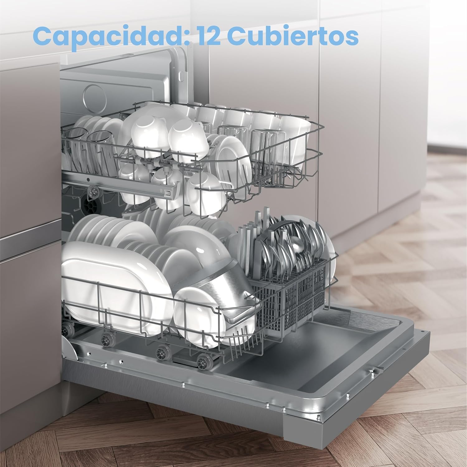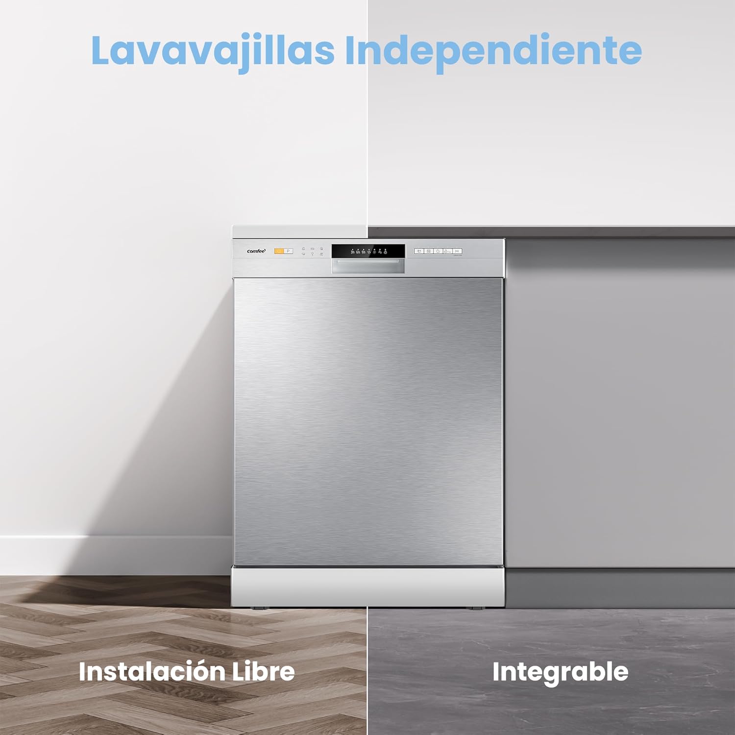 Le COMFEE’ CDWPF1201PS est un lave-vaisselle pose libre en inox de grande capacité. Avec ses 12 couverts et son niveau sonore de 49 dB, il combine performance et discrétion pour un usage familial quotidien.