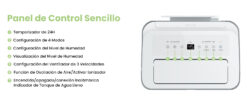 Je tire 10 litres d’eau par jour. Plusieurs fonctions de Clim, hygrométrie, il ne fait pas de bruit avec programmation à distance sur téléphone.