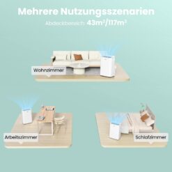 Wählen Sie zwischen niedriger (50,5 dB), mittlerer (51,5 dB) und hoher Stufe (53 dB). Im Schlafmodus für leisen Nachtbetrieb optimiert.