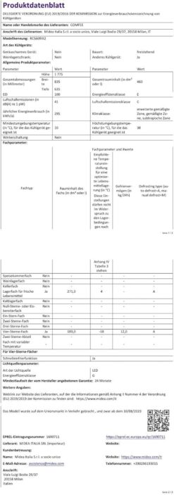 460 L (271 L Kühlschrank + 189 L Gefrierschrank) |