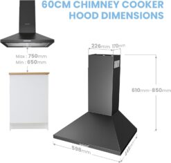 COMFEE PYRA17B-60 Chimney Cooker Hood 60cm | Black Wall Mounted Extractor Fan