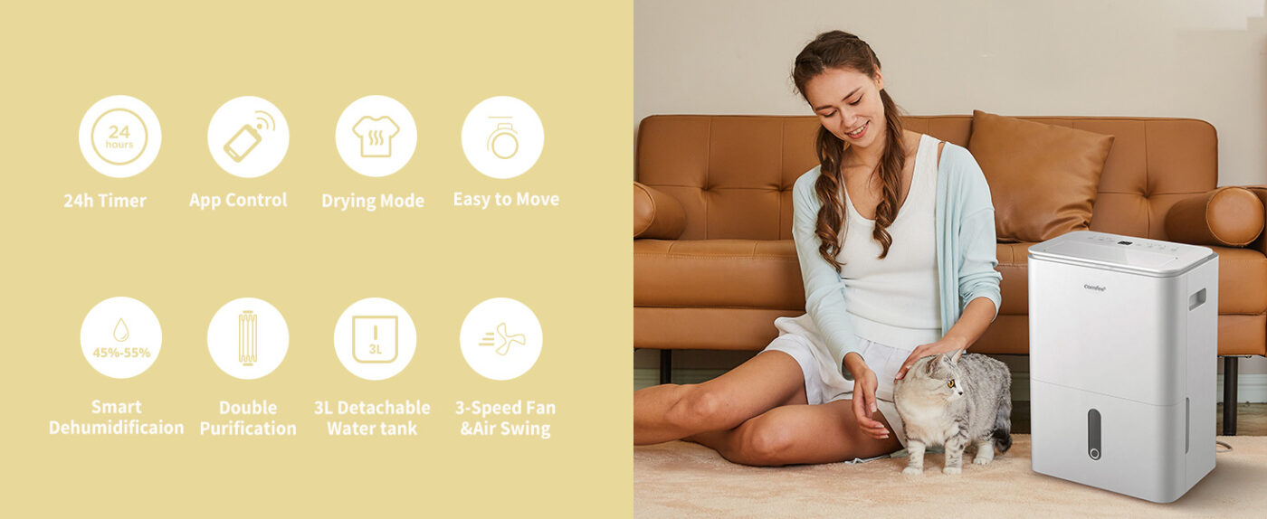 Combat dampness, condensation and mould with Comfee dehumidifiers from the Easy Dry Series. Ideal for UK homes prone to moisture problems, they protect your property whilst remaining quiet and discreet.