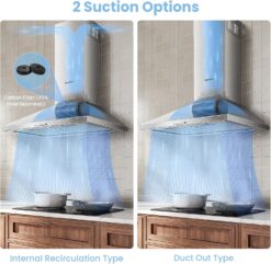 - Recirculating mode: Filters air through an optional carbon filter and recirculates it back into the kitchen