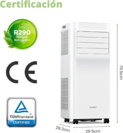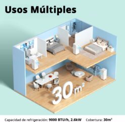 Este aire acondicionado portátil ha sido una excelente compra. Enfría muy bien espacios medianos y lo hace en pocos minutos. Es fácil de mover gracias a sus ruedas y no requiere instalación complicada, solo conectar el tubo a la ventana. El panel de control es intuitivo y tiene varias funciones útiles. Además, no es excesivamente ruidoso para lo que suele ser este tipo de aparatos. Ideal para quienes no pueden instalar uno fijo. Muy recomendable para el verano.