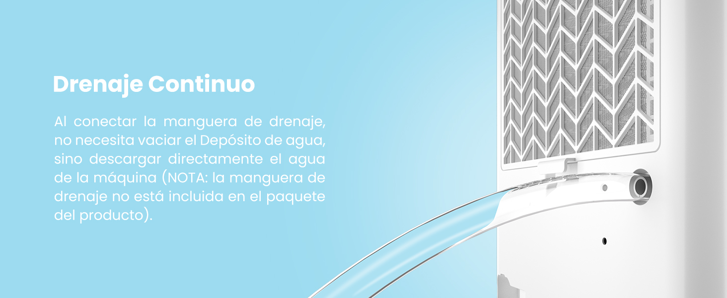 P: ¿El drenaje continuo requiere un tubo especial? R: Tubo estándar compatible (no incluido).